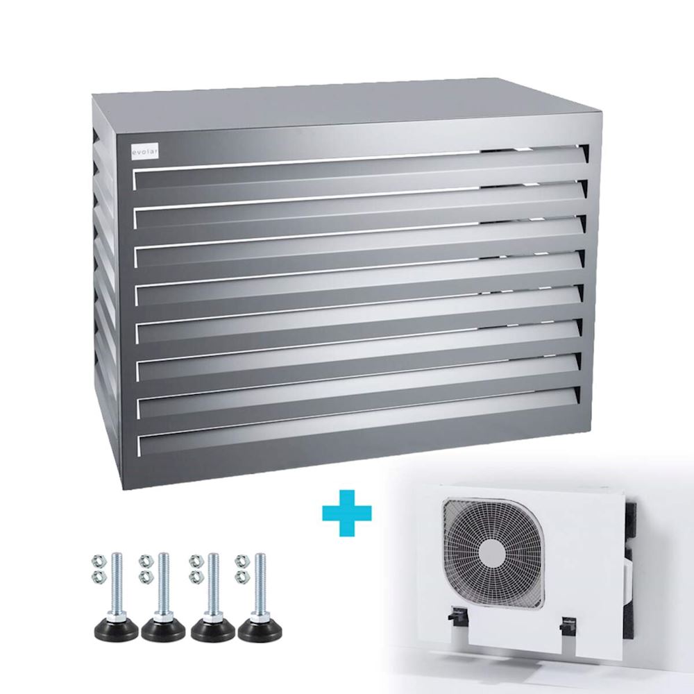 De Evolar Evo-cover omkasting is geschikt voor alle merken buitenunits van een airco of warmtepomp installatie en geeft een elegante en fraaie afwerking dat niet afsteekt van het gebouw of woning.